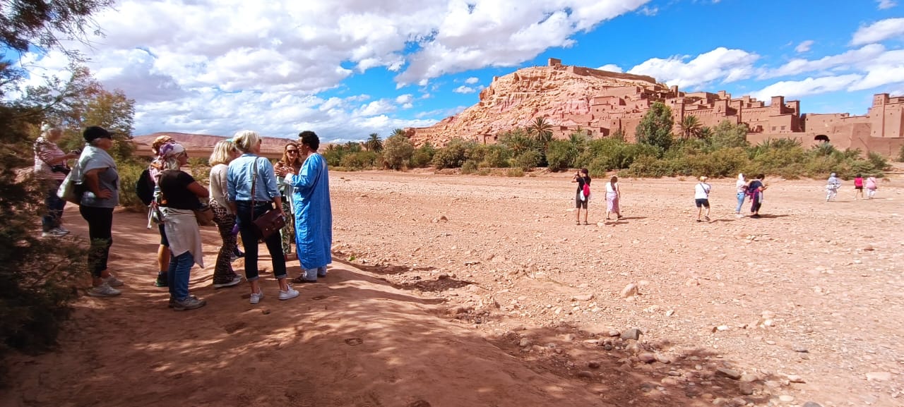 Nous nous donnons rendez-vous à votre lieu de résidence, vers 8h et nous prenons la route vers le Haut Atlas, nous franchissons le col de Tizi n’Tichka pour atteindre 2260m. Après le col Tichka, nous quittons la route principale pour prendre le chemin qui traverse la Kasbah Telouet située à 1 870 m d’altitude. Visite de la kasbah autrefois de résidence au Glaoui de Marrakech. Sa visite laisse rêveur : des cours intérieures, des arcades aux éléments décoratifs finement taillés, des marbreries incrustées de faïence. La visite est gratuite.Nous prenons ensuite la piste pour nous rendre à Ait Ben Haddou, lieu de décor de nombreux films d’Hollywood. Nous sillonnons la Vallée d’Ounila et ses villages berbères et prenons notre déjeuner sur la route. Arrivée à Ouarzazate. Dîner et nuit à l’hôtel.