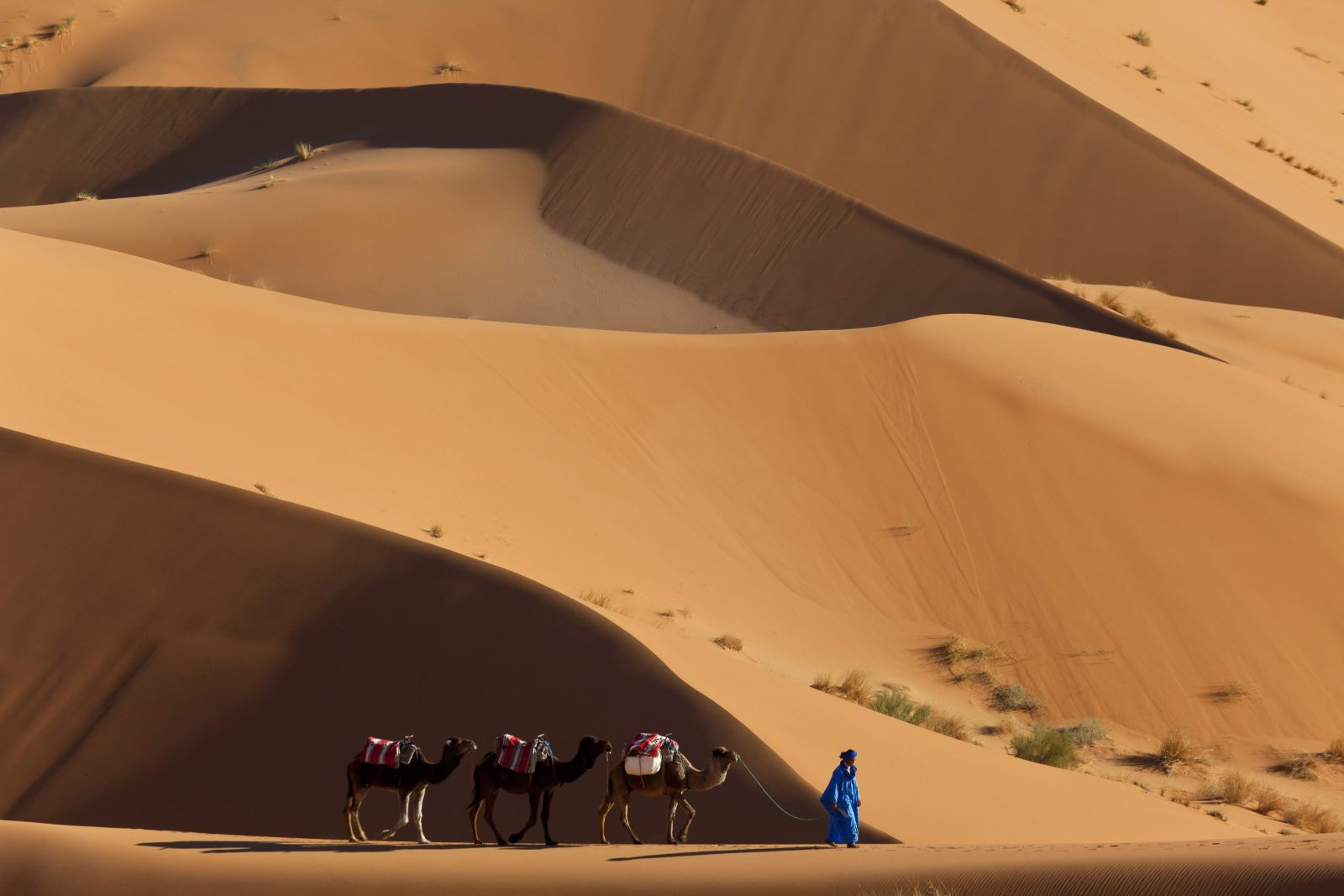 Pour le trekking ou balade en dromadaire, vous êtes toujours accompagné par un chamelier qui a été nomade lui-même ou issu d’une famille nomade. Il connaît le désert. Certainement que vous serez surpris ou ne comprendrez pas toujours, pourquoi tout à coup il change de direction. Lui sait se repérer et se diriger au milieu de ce rien qu’est le désert. Le secret des hommes en bleu.